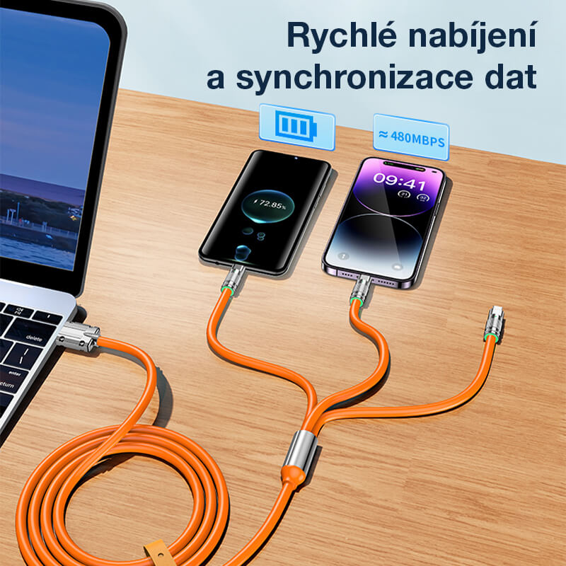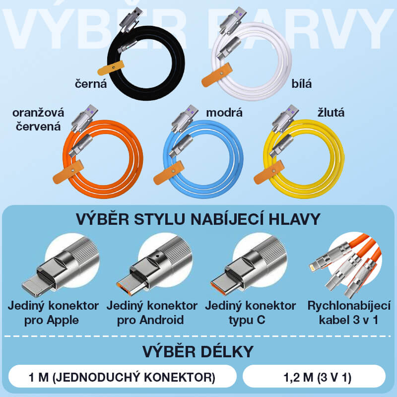 Pakiet zawiera: Kabel szybkiego ładowania 1 * 120 W 3 w 1 ze wzmocnionym rdzeniem ze stopu miedzi