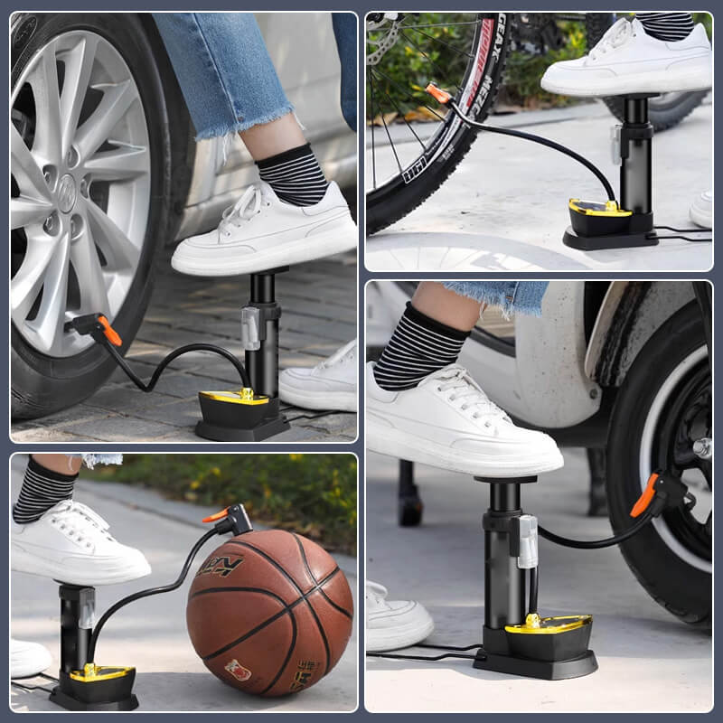 Wystarczy nacisnąć uchwyt pompki podłogowej, aby uruchomić przepływ powietrza (duży pedał z matą antypoślizgową). Lepsze niż irytujące ręczne pompki powietrza!