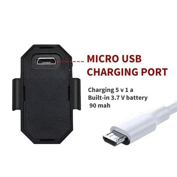 Możliwość ładowania przez USB: Wbudowany akumulator o pojemności 90 mAh, którego pełne naładowanie zajmuje tylko około 15 minut, umożliwia pracę lampy do 8 godzin.
