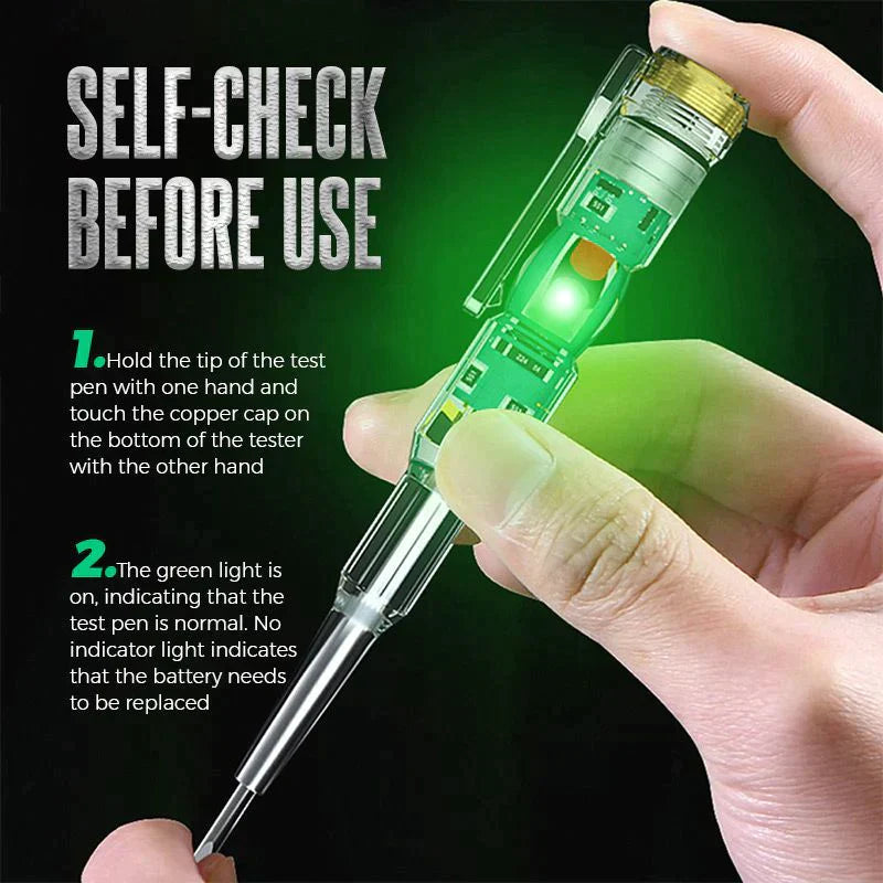 Wysoce inteligentny chip zapewnia szybką i czułą identyfikację przewodów pod napięciem i bez napięcia. Gdy głowica czujnika dotyka przewodu neutralnego, zielone światło świeci się w sposób ciągły; jeśli jest to przewód pod napięciem, czerwone i zielone światło świeci się jednocześnie.