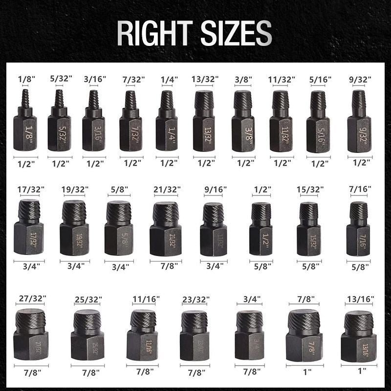 Zestaw ekstraktorów 25szt znajduje się w trwałym i wygodnym pudełku do łatwego przechowywania i przenoszenia. Szeroko stosowany w naprawie samochodów, garażu, placu budowy, remontu domu i tak dalej.