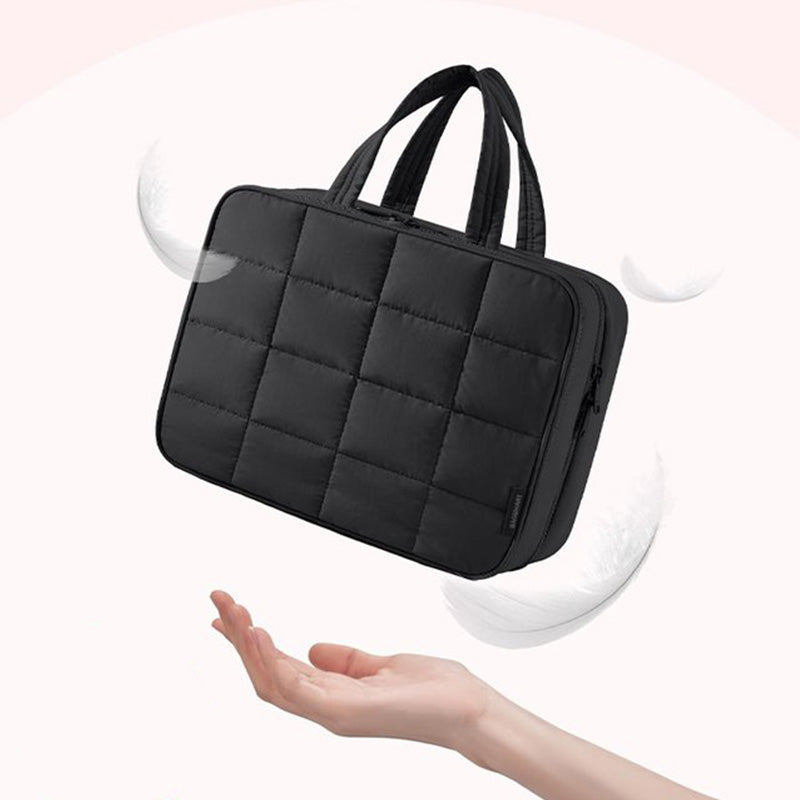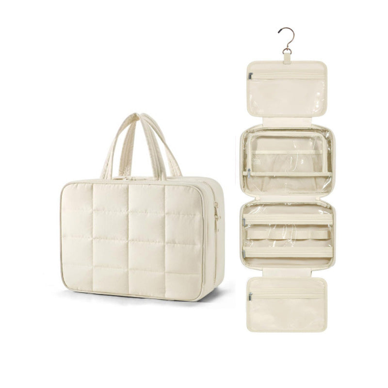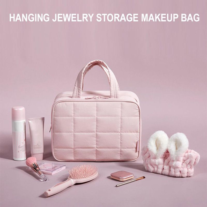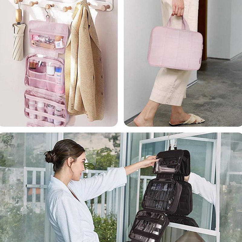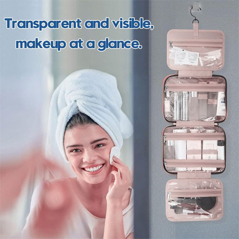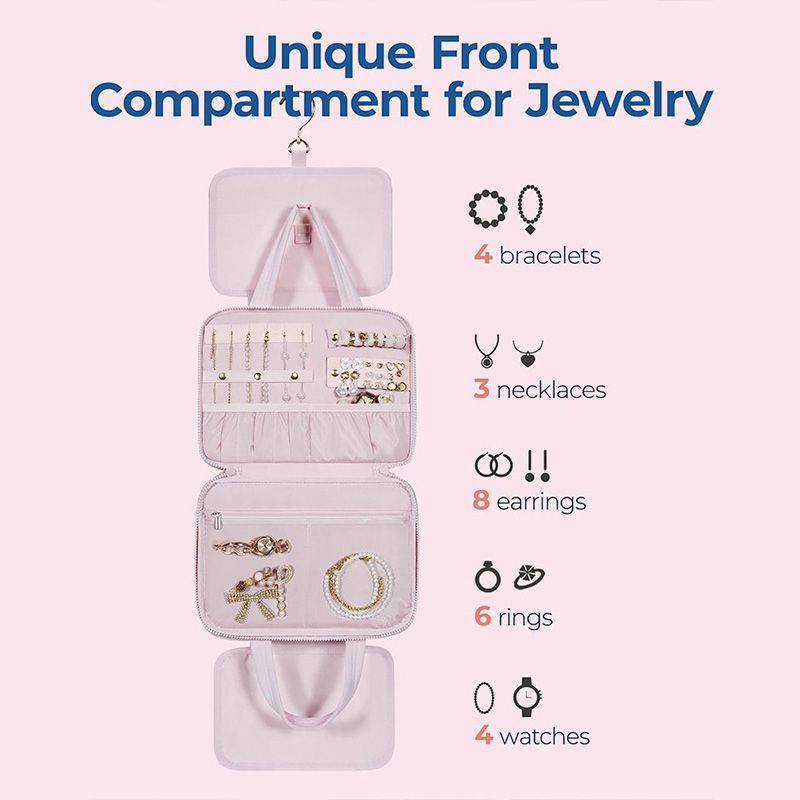 WIELE PRZEGRÓDEK: Zaprojektowana z wieloma przegródkami na przybory toaletowe i specjalną warstwą na biżuterię, możesz łatwo umieścić swoje produkty do mycia, kosmetyki i biżuterię oddzielnie, aby zorganizować swoją podróż. Bez obaw o podróże na duże odległości.