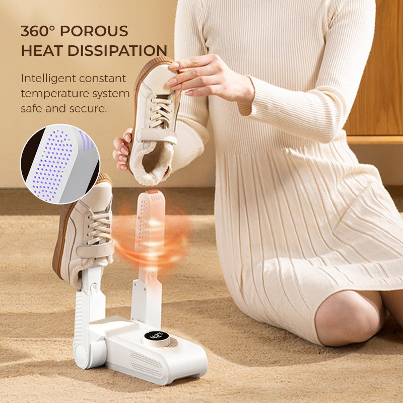 【ELIMINUJE WILGOĆ I ZAPACH】Optymalna cyrkulacja ciepła skutecznie eliminuje wilgoć, pot i nieprzyjemny zapach w butach, a sterylizacja UV chroni zdrowie stóp.