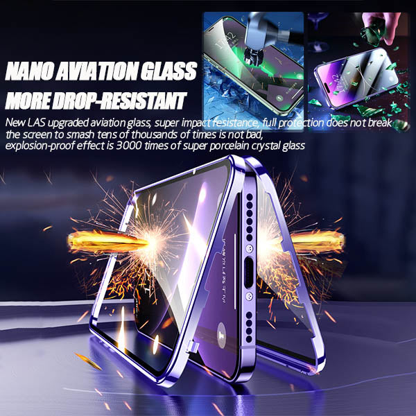 Nowo zaktualizowana dwustronna powłoka szklana z klamrą, samoblokująca się dwustronna konstrukcja blokady, jak nie może być złamana. Jest wytrzymały i skuteczny, aby chronić telefon komórkowy przed obrażeniami. W porównaniu do zwykłych przypadków szklanych na rynku, nie ma blokady, złamany ekran wyleci, gdy telefon zostanie upuszczony.