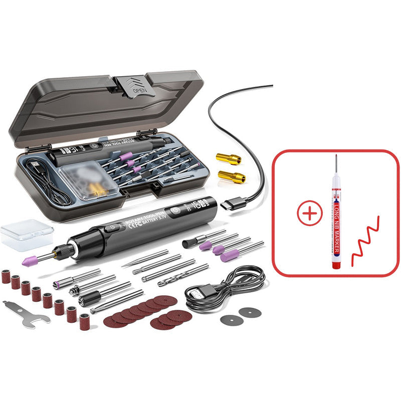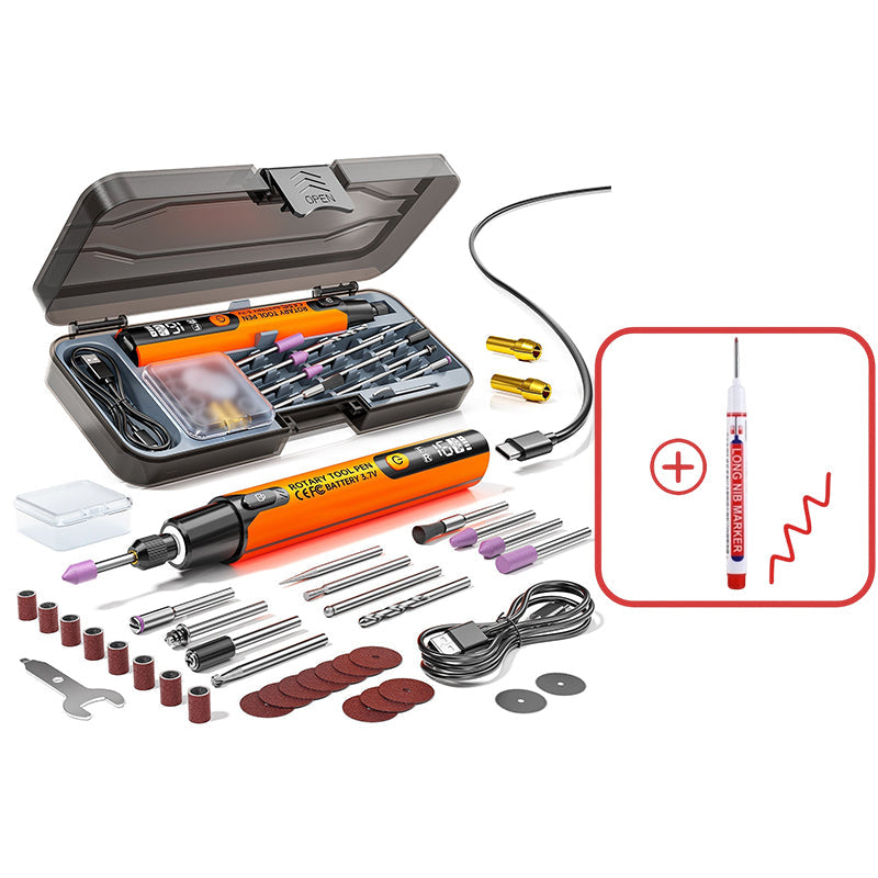 MOCNY SILNIK 16 000 obr./min – Wyposażony w silnik o dużej prędkości, który zapewnia solidną i stabilną moc, umożliwiając bezproblemowe wykonywanie takich zadań, jak szlifowanie, polerowanie, grawerowanie i cięcie różnych materiałów z wyjątkową wydajnością.