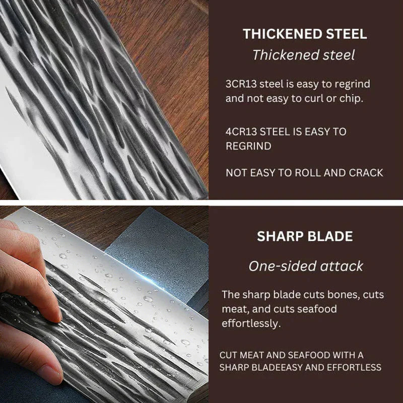 Wszechstronny nóż do łatwego krojenia, siekania i rozdrabniania – niezależnie od tego, czy kroisz mięso, warzywa, owoce czy zioła, ten nóż zapewnia wyjątkową precyzję i kontrolę. Zaprojektowany z myślą o amatorach gotowania, profesjonalnych kucharzach i pasjonatach kuchni, jest niezbędnym narzędziem do łatwego przygotowywania posiłków w domowych kuchniach, restauracjach, podczas grillowania i gotowania na świeżym powietrzu.