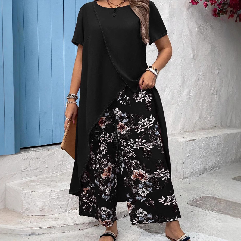 Pakiet zawiera: 1* damski top w jednolitym kolorze i zestaw spodni z nadrukiem