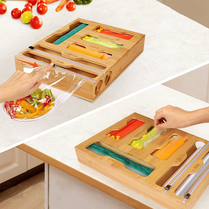 ROZWIĄZANIE OSZCZĘDZAJĄCE MIEJSCE - Uwolnij kuchenne szuflady i blaty. Nasz organizer do folii zapewnia wyznaczone miejsce na folię, folię plastikową, pergamin, a nawet torby do przechowywania, dzięki czemu kuchnia jest dobrze zorganizowana i wolna od bałaganu.
